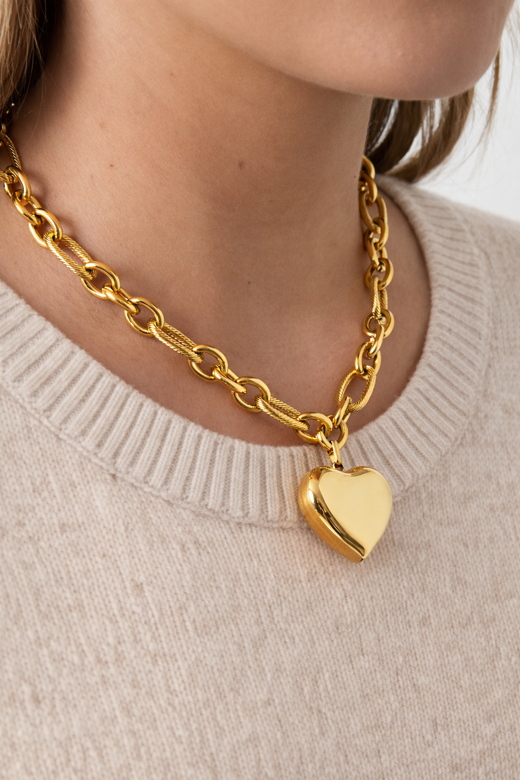Voeg een vleugje liefde én elegantie toe aan je dagelijkse look met deze ketting. Deze toffe ketting, vervaardigd uit duurzaam roestvrij staal met een stijlvolle goudkleurige afwerking, is een subtiel maar betekenisvol accessoire. Het hartvormige detail straalt zachtheid en romantiek uit, perfect voor zowel casual outfits als specialere momenten.